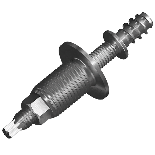 The individual tolerance adjustment and the design requirements are the relevant properties of this customer-specific adjustment element. The collar of the threaded bolt is the contact surface on the plastic attachment. Through screwing in and out of the hollow screw the contact surface and thus the position of the support component can be changed.