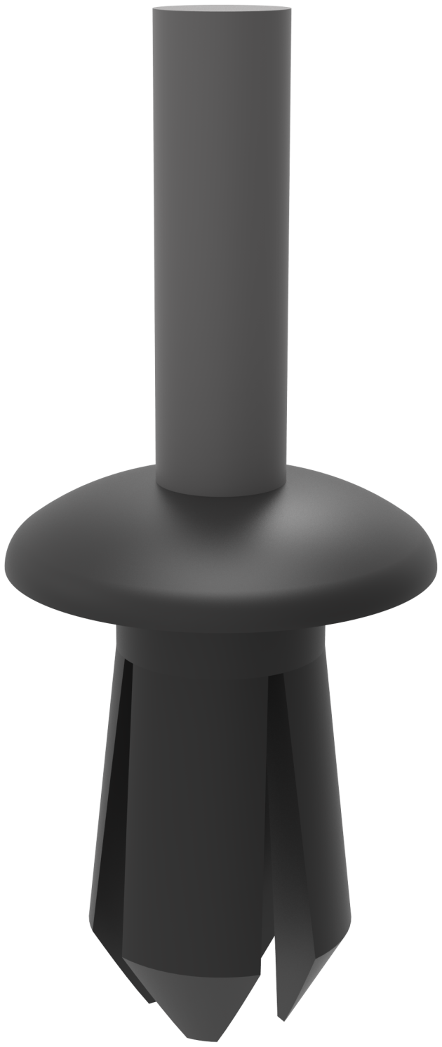 塑料推入铆钉,圆孔安装,适用钣金厚度3-8,孔径4.95-5.55。
