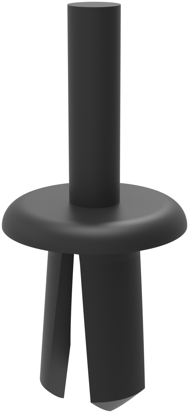 塑料推入铆钉,圆孔安装,适用钣金厚度2-3,直径4-4.1; 钣金厚度3-6,孔径4.2-4.25。